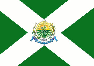 White saltire on green, with the municipal arms centred.