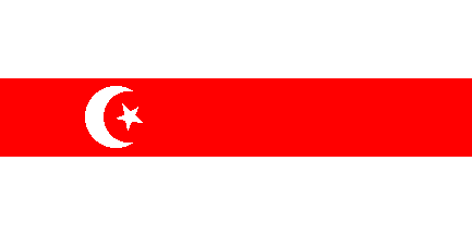 Horizontal white-red-white with white crescent and star in red