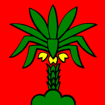 Gules a Palm Tree Vert fructed Or issuant from Coupeaux of the second.