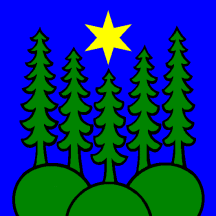Azure five Pine Trees Vert issuant from three Mounts of the same the middle