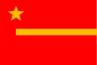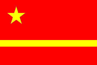 Designed by Xiao Shu Hua. The red flag with a yellow star in canton and yellow horizontal thin bar from fly end to beneath the star.