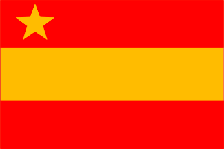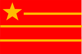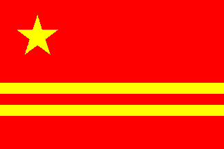 Designed by Hu Yuan Qing. The red flag with a yellow star in canton and three horizontal yellow thin bars.