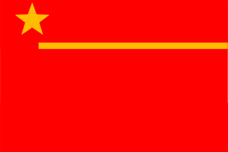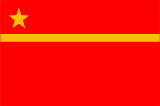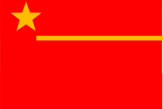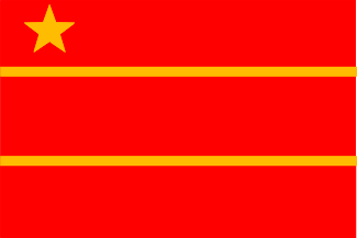Designed by Xiao Shu Hua. The red flag with yellow star in canton and yellow horizontal thick unbroken bar.