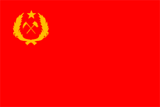 Designed by Zeng Lian Song. The red flag with yellow large star with red crossed hammer and sickle inside surrounded by four yellow small stars in canton.