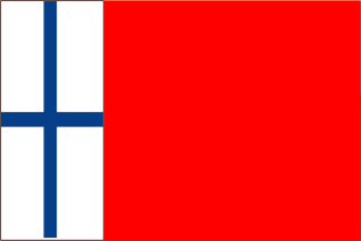 Designed by Xiao Shu Fang. The red flag with blue cross in white panel hoist.