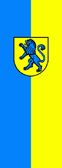 It is a blue-yellow vertical bicolour. The coat of arms is shifted to the top.