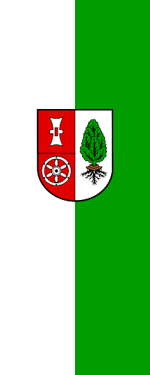 It is a white-green vertical bicolour. The coat of arms is shifted to the top.