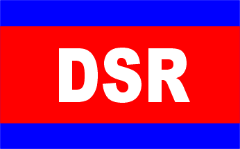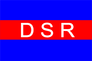 There has been an “intermediate” house flag jointly belonging to DSR and Senator, for that period see Neale’s comments (dated 3 May 2004) on this page. It shows a horizontally divided variant dark blue-red-dark blue, without any initials or emblem. Seems 2:3:2 to me but then this is the proverbial table flag harvested from German eBay offer no. 160099256135 (end 2 Apr 2007). This item was put up by “cap_frio” (origin: MarCollect), dimensions given as 15 cm x 25 cm. MarCollect is aintained by Klaus-Peter Bühne, a knowledgeable source.