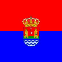 Coat of arms: Gules two towers or masoned sable port and windows azure terraced vert over a river wavy azure and argent, in chief a key argent with the ward shaped as an eight-pointed star. The shield surmounted with a Royal Spanish crown.