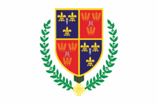 The arms of Dugny are "Quarterly, 1. and 4. Azure three fleurs-de-lis or surrounding a nail argent, 2. and 3. Gules three garbs of three wheat spikes or surrounding a fer de moline argent".