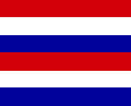 Image based on a black and white photo - it is known that the top stripe is red, the others could be white & yellow or yellow & white.