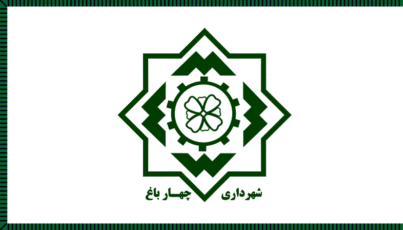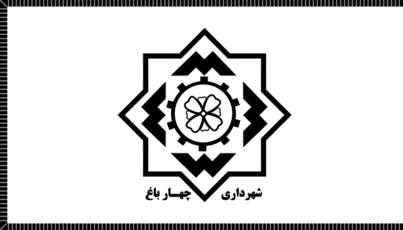 The flag of Chaharbagh is white with logo and fringe in black or green.