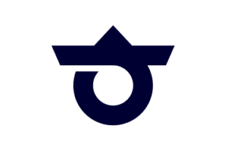 The city emblem was adopted on Sep 1st 1970 by Notice No 1 but there is no flag law. The white flag has a blue city emblem in the center. The city emblem is a stylized hiragana ち Chi of Chita. The upper part depicts a Peng wheeling in a giant sky in the meanwhile the lower part symbolizes the citizen’s solidarity and a concord.