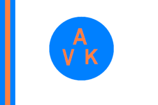 of blue, orange and blue; in center blue disk, charged with orange "AVK".