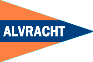 of three equally wide horizontal stripes of orange and blue; on blue "ALVRACHT"