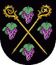 The croziers are representing the arms of the Order of São Bento. The black colour is simbolizing the colour of the soil and furthermore representing firmness, obedience,honesty and courtesy. The grapevines are symbolising local viticulture.