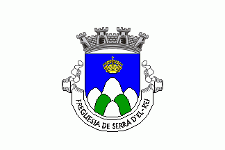 Shield Azure, in base a hexamount issuant (= two triple mounts) having four peaks Argent and two peaks Vert, in central chief a crown Or. Mural crown Argent with four visible towers (town rank) and white scroll with inscription in black initials: "FREGUESIA DE SERRA D'EL REI".