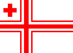 White flag with red cross off-set to hoist and a red cross coupé in canton. In other words, the flag has a red Scandinavian cross bordered in white and red and in the white canton is a red Greek cross. Jilek (1989) reported that the flag was designed by Prince Tupouto'a, Minister of Foreign Affairs and Defence when the flag was adopted 13 September 1985.