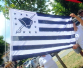 now on the flagpole at Bartlet Mall on High Street. The flag made its first