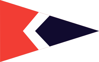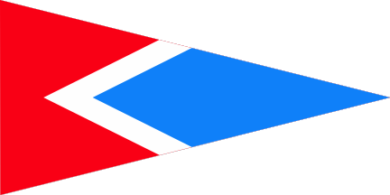 its burgee a white 2:3 pennant with a narrow blue flywise stripe through the